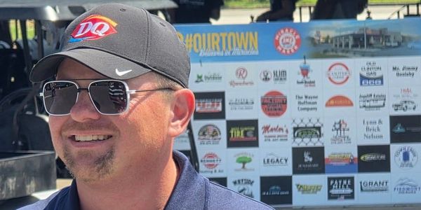 There's Hunter Cossette, holding that checkered flag! We sure do like having our name on the side of that racecar. I know it looks better, and I'm pretty sure it makes it GO FASTER, too. lol